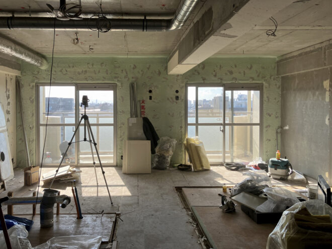 先日、武庫之荘のマンションリフォームが着工しました。まずは内装の解体から。