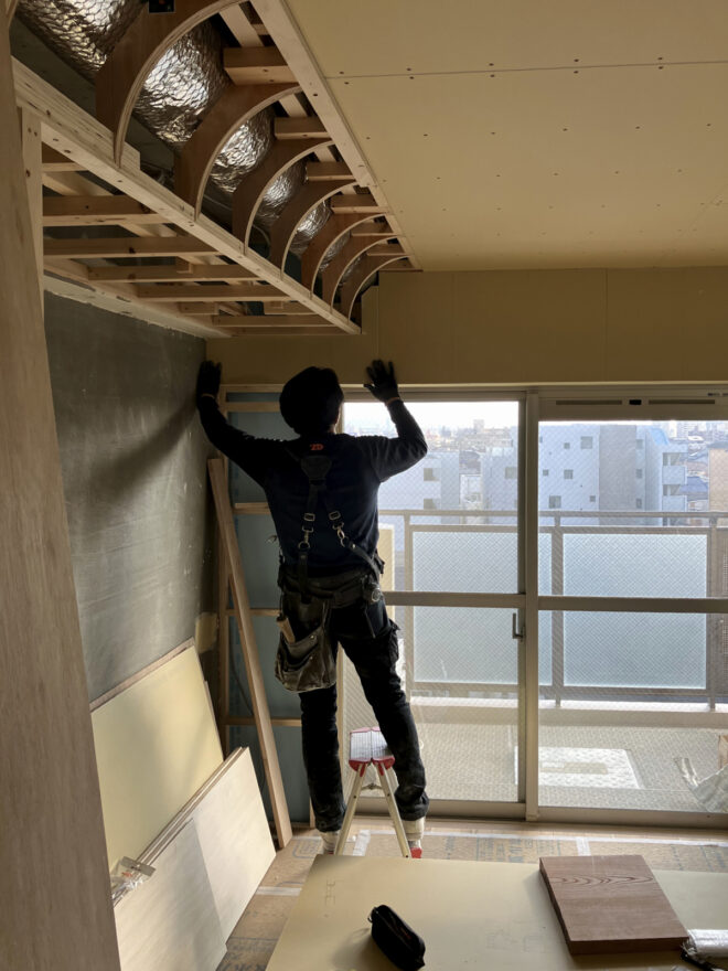 武庫之荘のマンションリフォームの大工工事終盤の様子です。