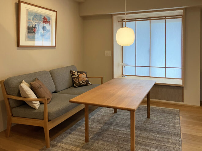 先日、吹田のマンションリフォームの1年点検を行い、建具(襖、障子)の調整などを工務店さん+建具職人さんにより気持ちよく完了していただけました。 お引渡しの時には無かったリビングのペ […]